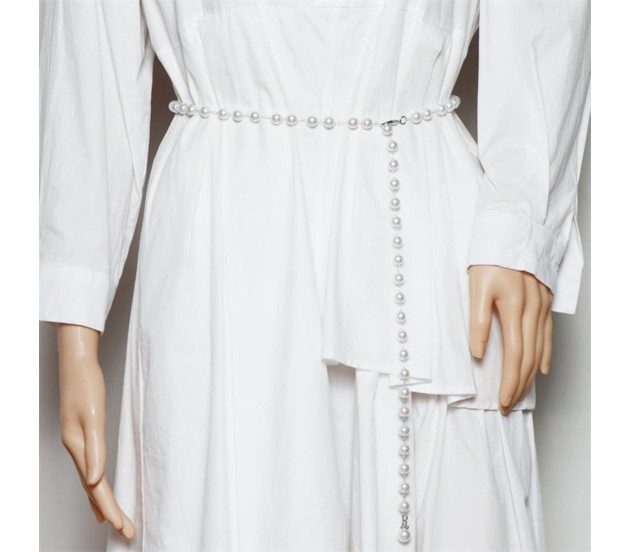 Elegant 1 layer waist chain silver with intricate white pearl chain, perfect as a pearl waist chain for women or as a thin waist chain for women seeking style and tradition.