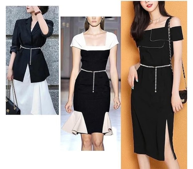 Lightweight, eye-catching and adjustable kamar band for navratri, featuring pearl chains for women stylish looks, white pearl chain and chain belts for women – a perfect pearl belt for women for weddings, parties, festivals and daily wear.