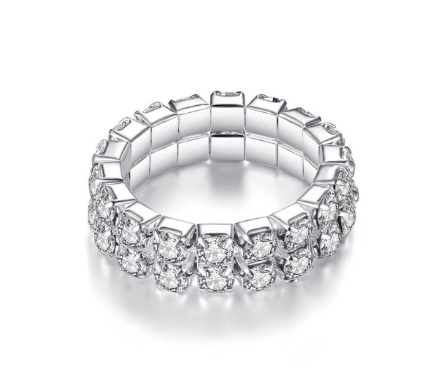 2pc Elastic Adjustable Rhinestone Toe Ring or Finger Rings Set Silver Plated Chunky Artificial Ladies White Stone Fashion Crystal Aesthetic Jewellery For Women