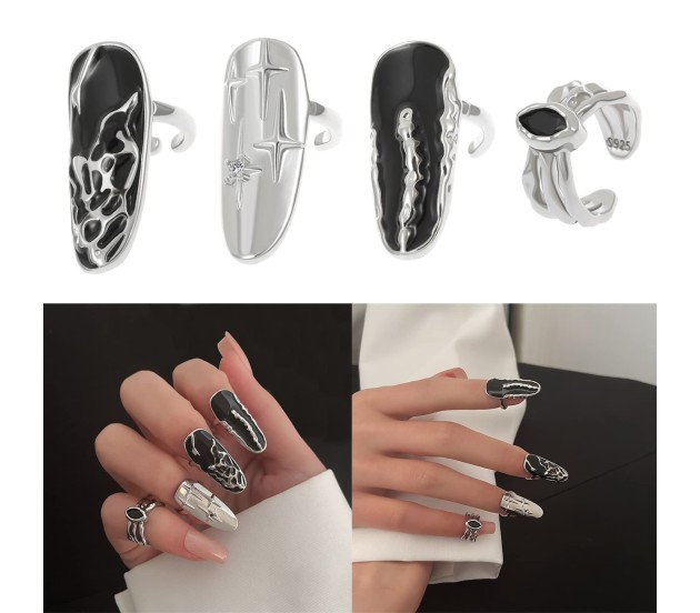 High Quality Material: Made of high quality alloy, this silver ring set is durable and long lasting. The metallic silver nail rings are sure to make you stand out from the crowd. These nail rings are perfect for any occasion.