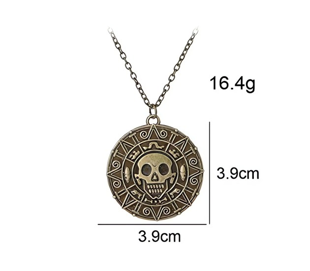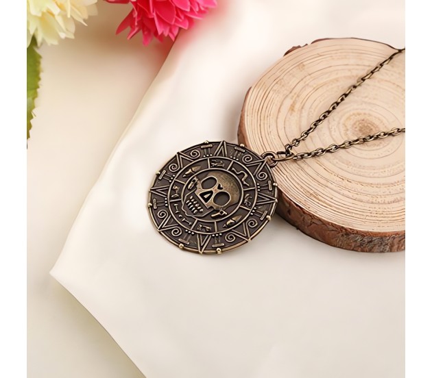 Crafted as an authentic-looking aztec coin pendant, this piece serves as the perfect pirates of the caribbean pendant for your collection or as a standout cosplay jewelry accessory.
