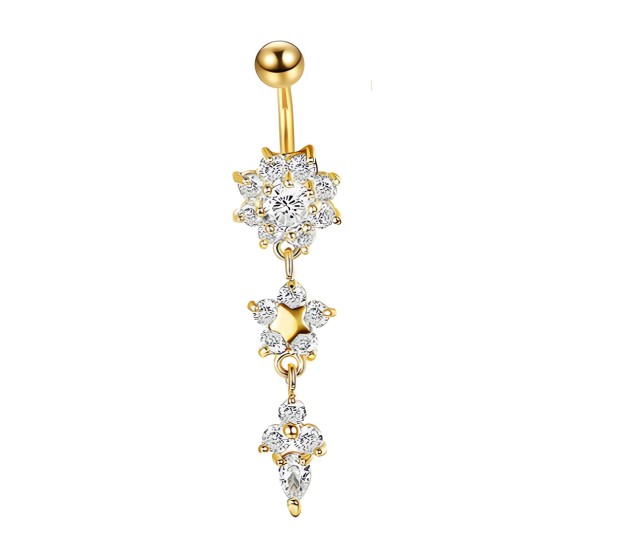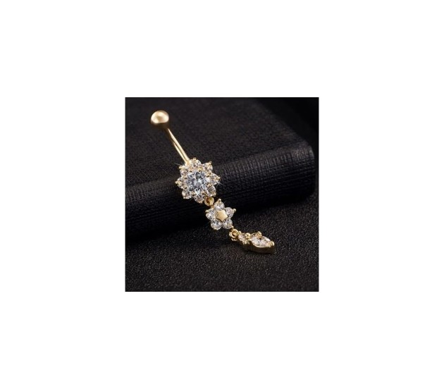 Sparkling Style: This eye-catching belly button ring features flower 3 layer in gold plated with black eye, adding a touch of elegance and shine to your outfit.