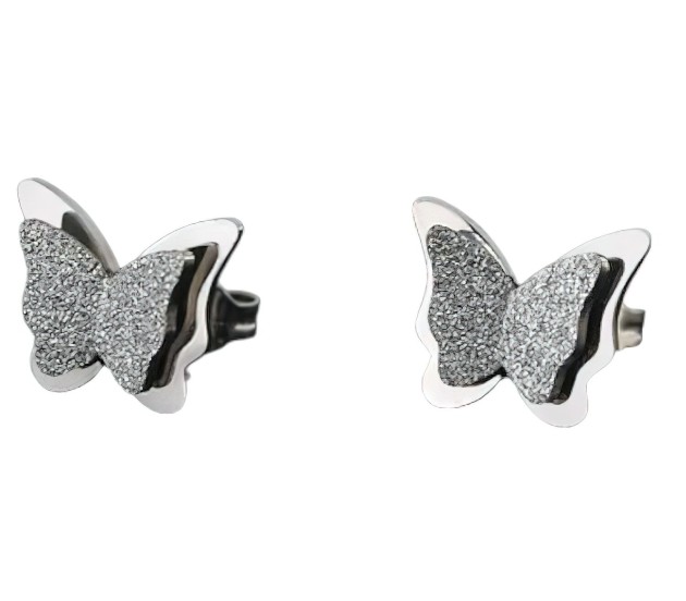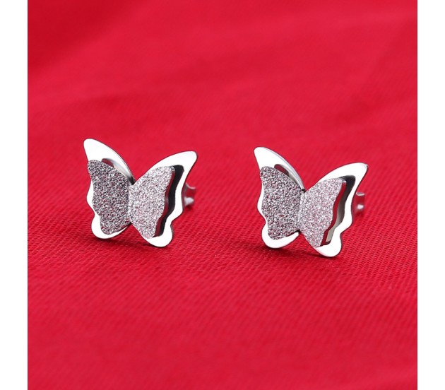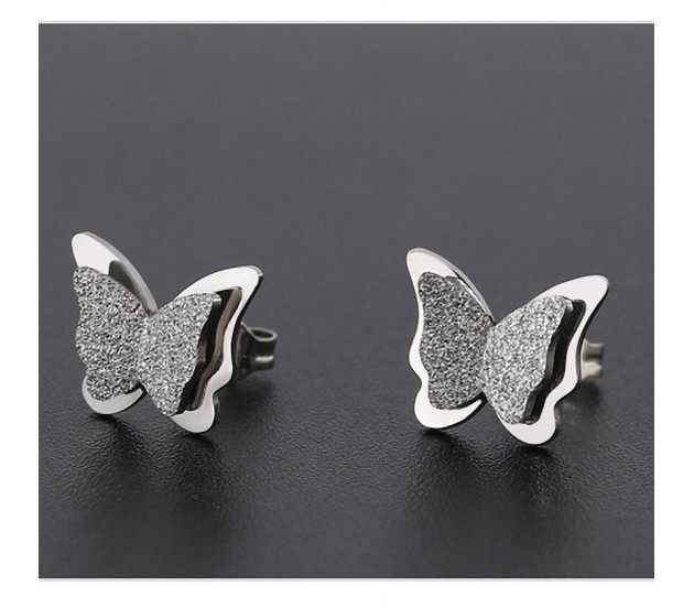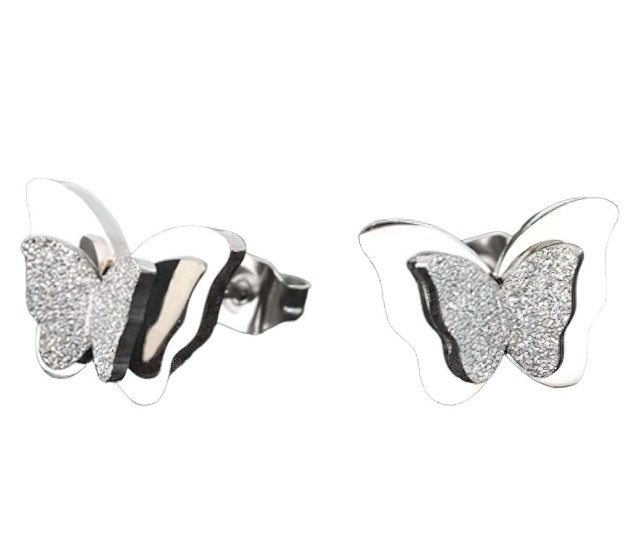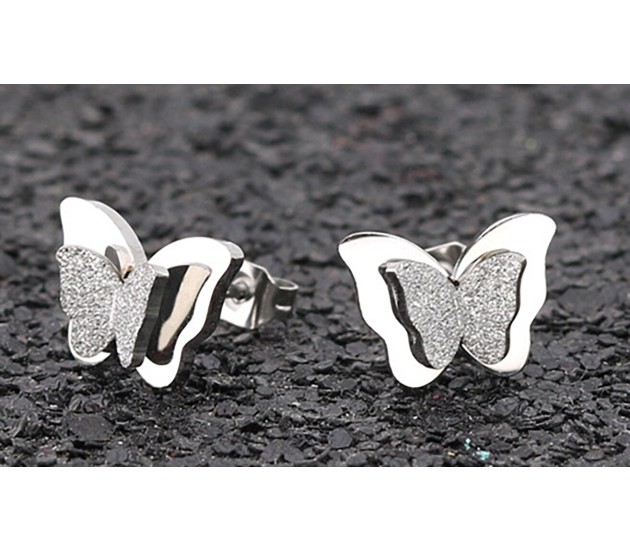 Tags: Charming Dual Butterfly Surgical 18K Steel Silver Stud Earrings for Girls and Women