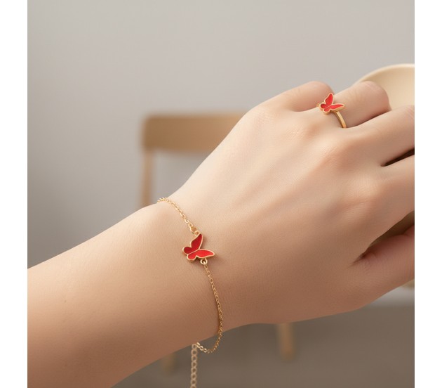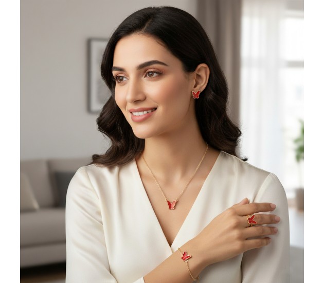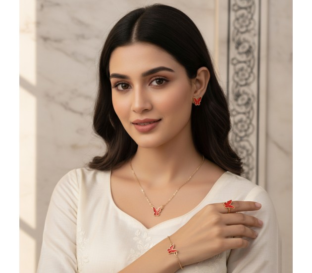 Adding to the allure, this pendant set for girls also includes an adjustable red butterfly ring and a matching red butterfly bracelet. Both pieces feature the same intricate butterfly design, ensuring a cohesive and polished look from head to toe.