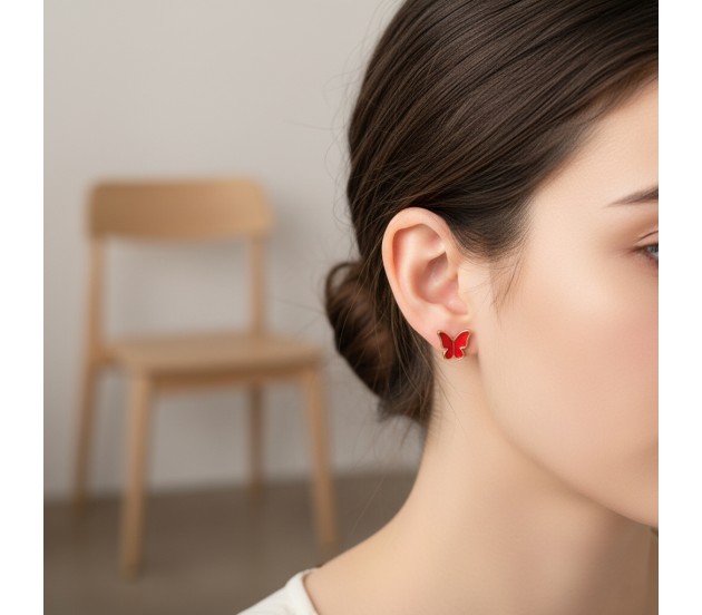Complementing the necklace are the charming butterfly earrings for girls. This butterfly earrings set includes a pair of red butterfly stud earrings. These butterfly stud earrings are lightweight and comfortable for all-day wear, perfectly matching the red butterfly necklace.