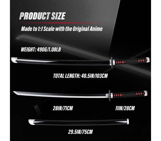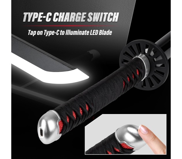Demon Slayer Cosplay: Embrace the world of Demon Slayer with our 104 cm Tanjiro Kamado Wooden Sword Nichirin Life Size Replica Katana. Exquisite Craftsmanship: Carefully crafted to replicate the iconic Tanjiro Kamado Katana from the anime series, this wooden sword showcases exceptional attention to detail. Life-Size Replica: With a length of 104 cm, our Tanjiro Katana accurately recreates the size and proportions of the original sword, providing an immersive cosplay experience. This sword is made of wood and plastic, the blade has a built-in LED light strip, a quick touch 2 times at the location of the charging port at the top of the hilt can turn on the light. The product is built-in 1 battery, battery capacity 180 mAh Premium Quality: Made from high-quality wood, this katana replica offers durability and a realistic weight, enhancing your Demon Slayer cosplay or collection. Safe and Lightweight: Unlike metal replicas, our wooden katana is safe to wield and carry, making it suitable for cosplay events, conventions, and display purposes. Perfect Anime Gift: Surprise your friends, family, or fellow Demon Slayer fans with this remarkable Tanjiro Kamado Katana replica, an ideal gift for birthdays, holidays, or special occasions. Collector's Item: Add this Demon Slayer katana to your anime merchandise collection and showcase your passion for the series in style.