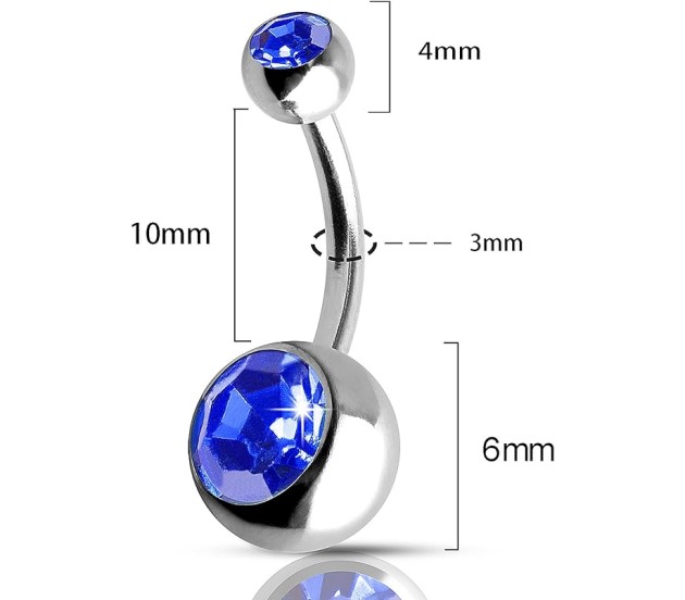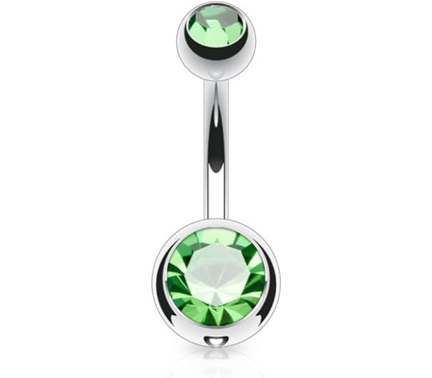 Sparkling Style: This eye-catching belly button ring features two dazzling crystals, adding a touch of elegance and shine to your outfit.