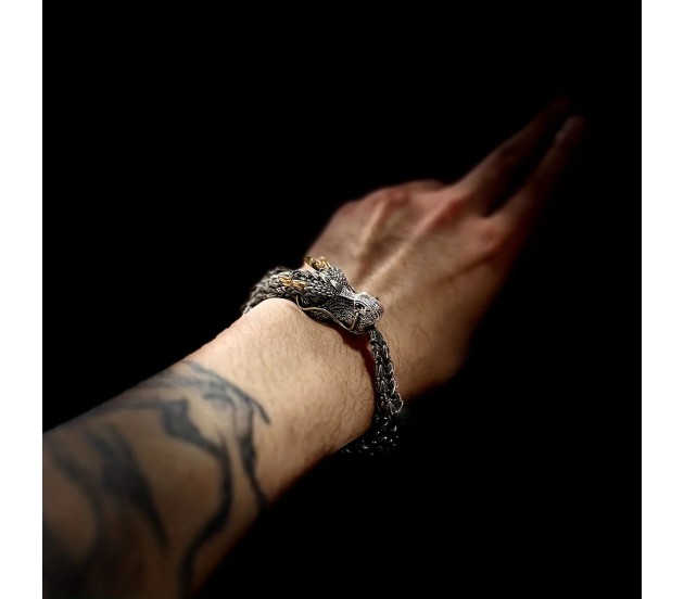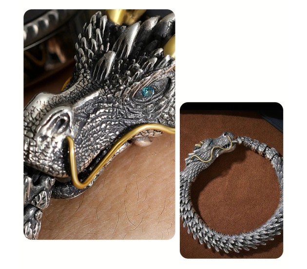 Ideal as a dragon bracelet for men, this piece is inspired by timeless designs, including vintage and scale aesthetics.