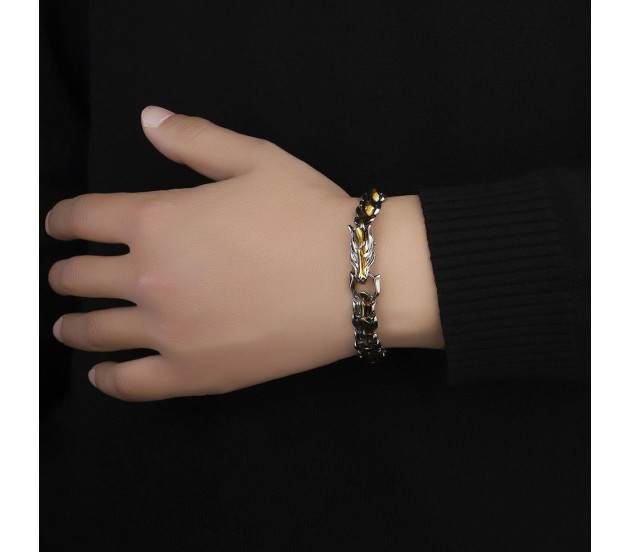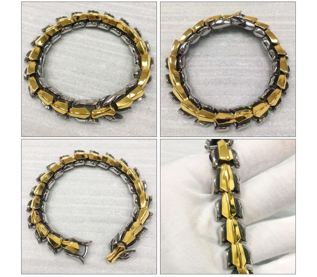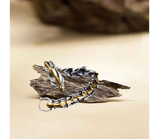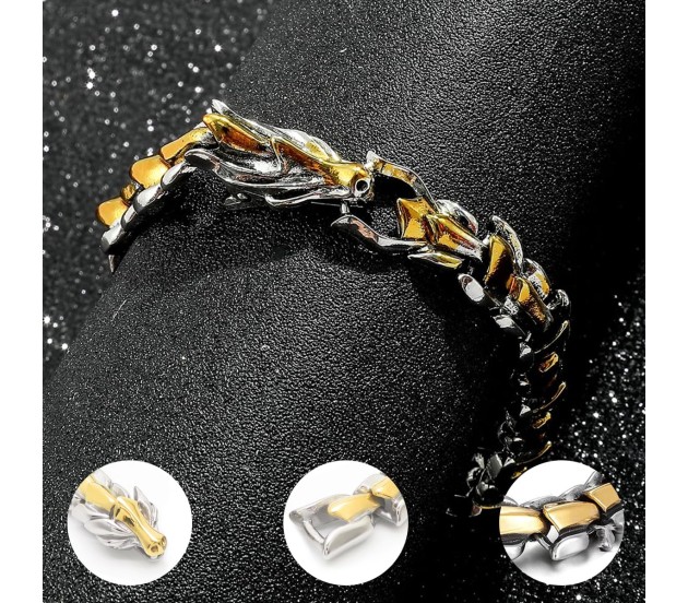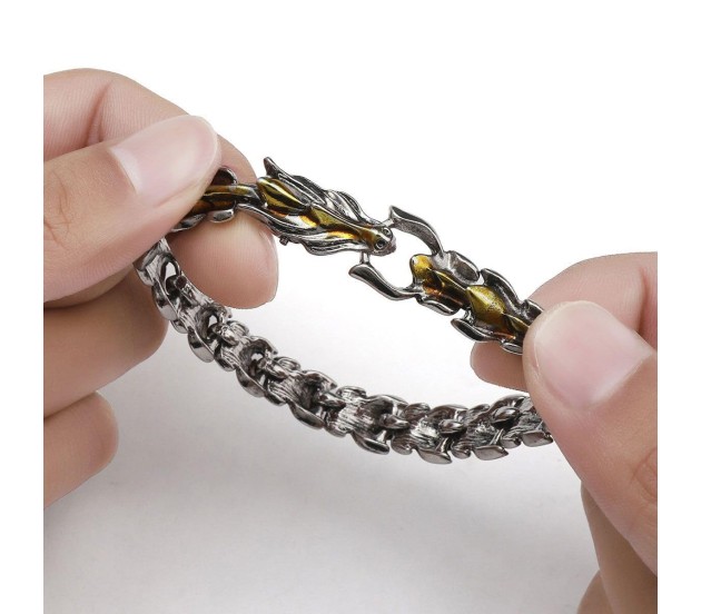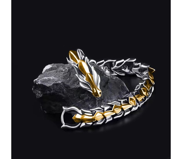 The ultimate silver gold bracelet for man, combining quality materials, heavy construction, and intricate dragon motifs showcasing strength and style.