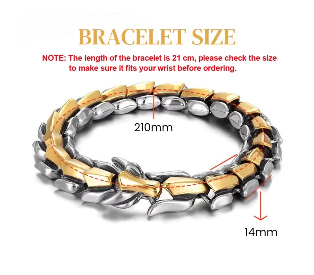 Dragon Scale GOT 12mm Silver Gold Plated Bracelet with Hook Buckle Totem Vintage Heavy Weight 21cm Retro Style Mens Bracelet