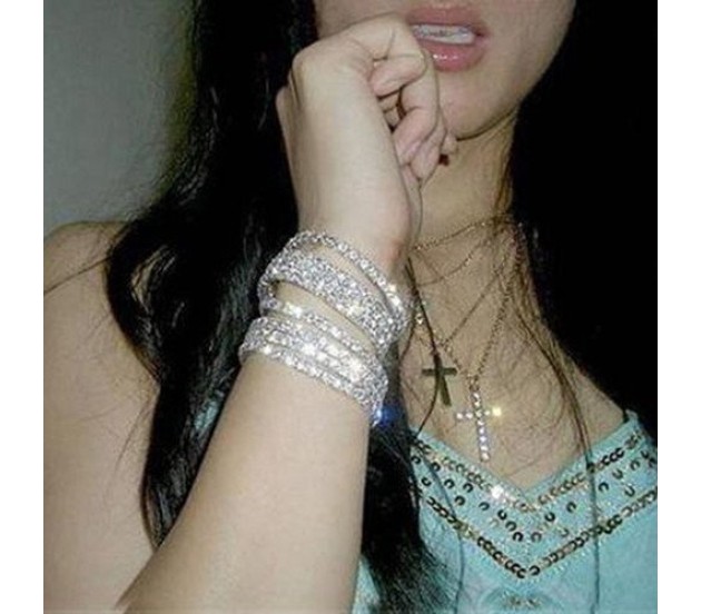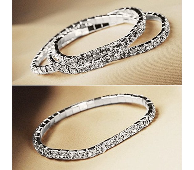 • Features: Rhinestone Inlaid, Single Row, Elastic Bracelet