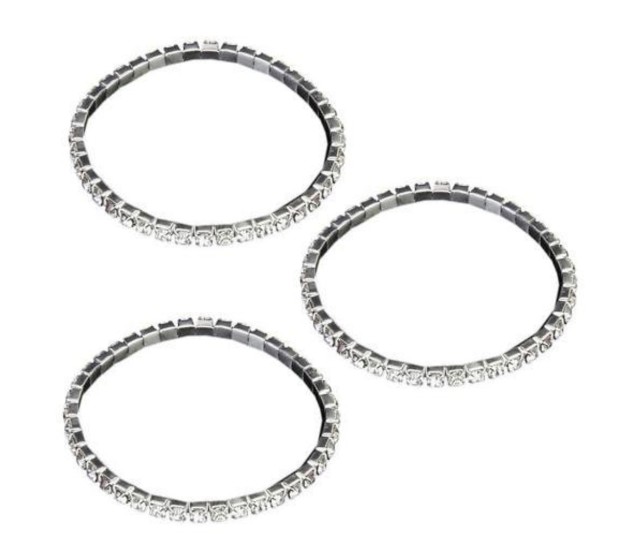 Elastic Fashion Silver Tone Crystal Rhinestone Ankle Anklet Bracelet Stylish Single Row Set of 3 for Women and Girls