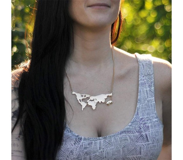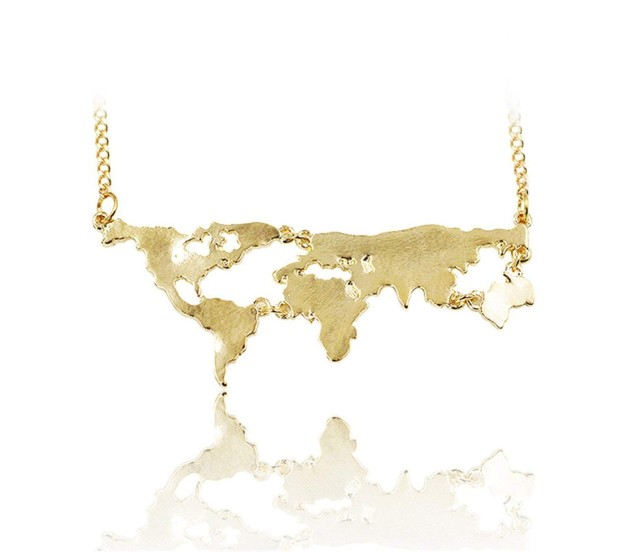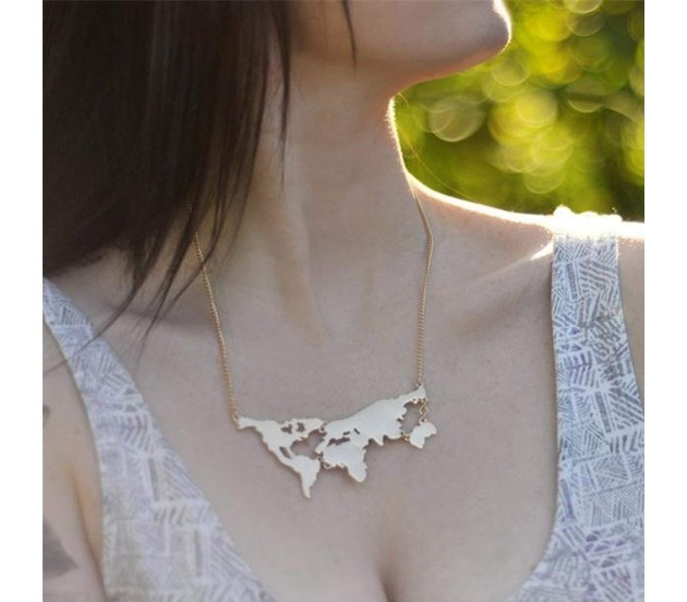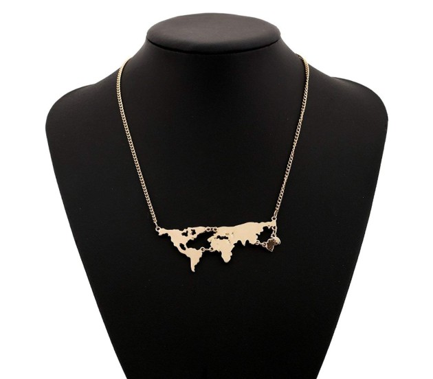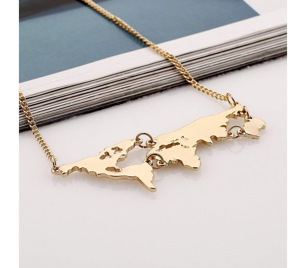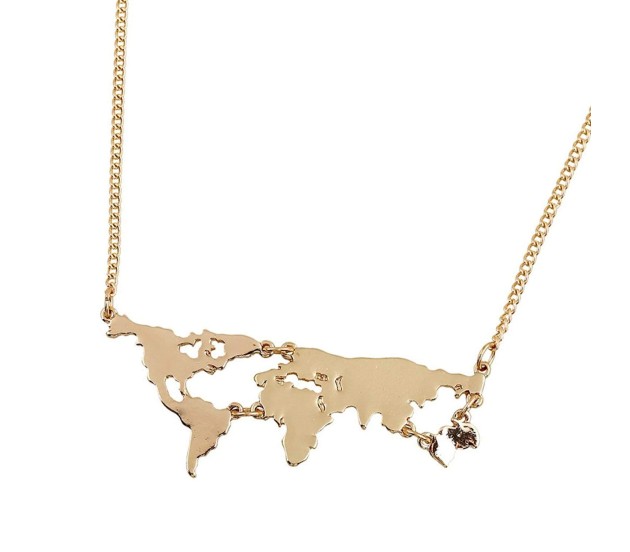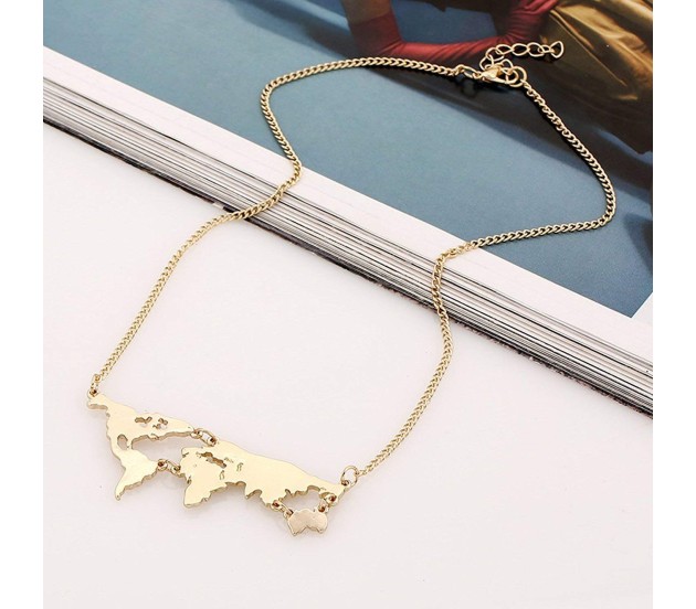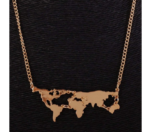 Tags: Golden Metal World Map Travel Abstract Pendant Gold Plated Necklace for Women and Girls