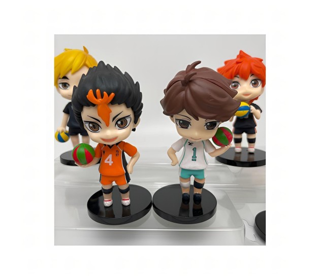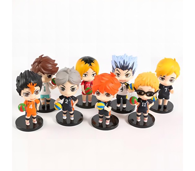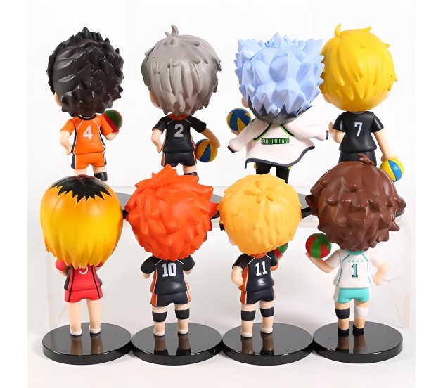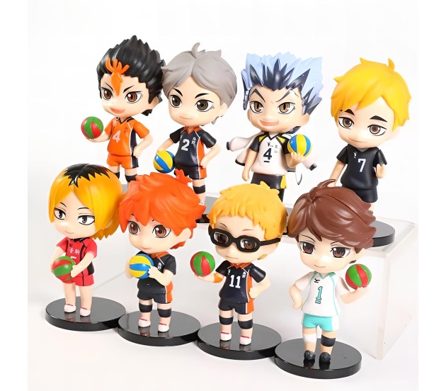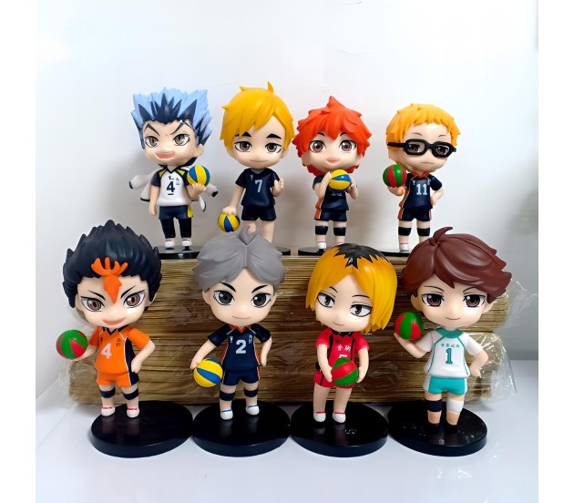This Haikyuu action figures set includes 8 meticulously crafted pieces, each standing between 9-10cm tall, making it a perfect haikyuu toy for collectors and fans of the haikyuu volleyball series.