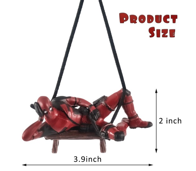 Use this dead pool action figure as a car hanging ornament. It is designed to be a car dashboard hanging ornament or to swing from your rearview mirror, making it a great conversation starter and a unique deadpool car accessory for your dashboard.