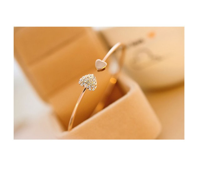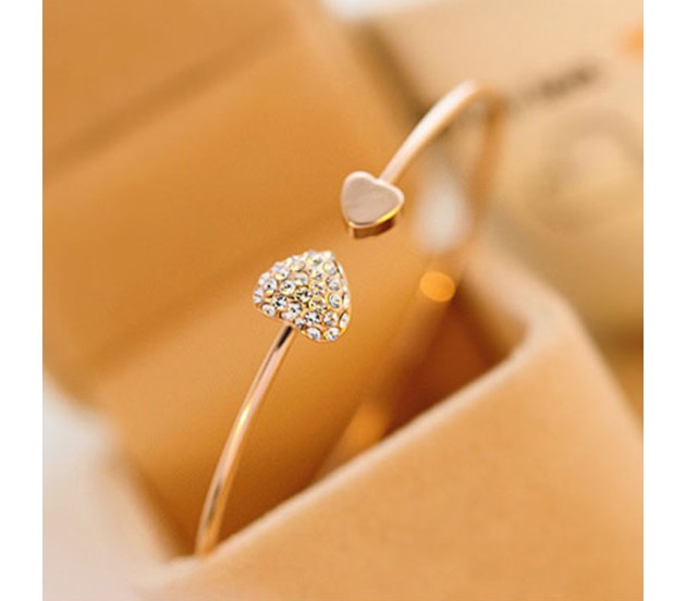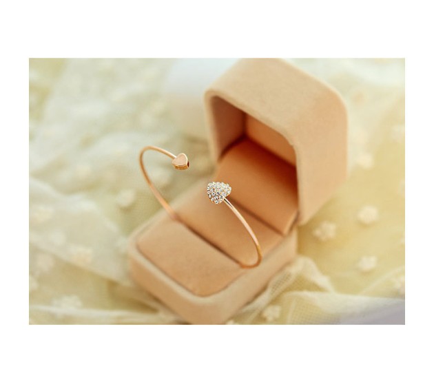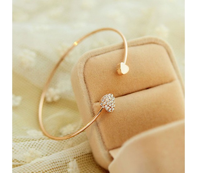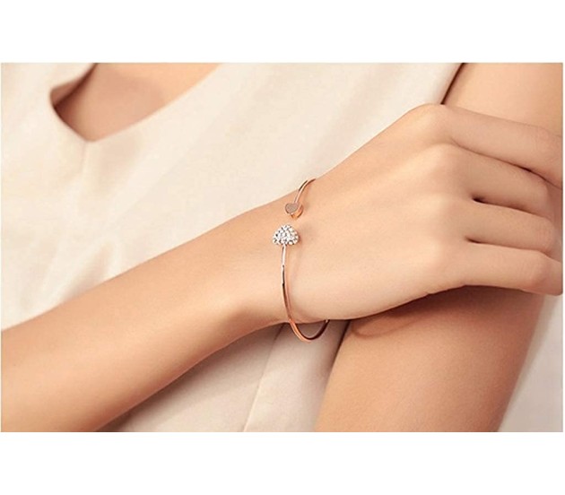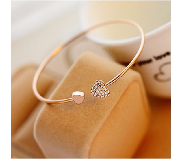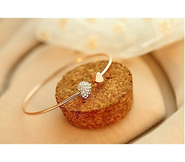 Gold cuff bracelet is made up of gold plated and rhinestone and has a heart shape charm. It is a perfect gift for your loved ones.