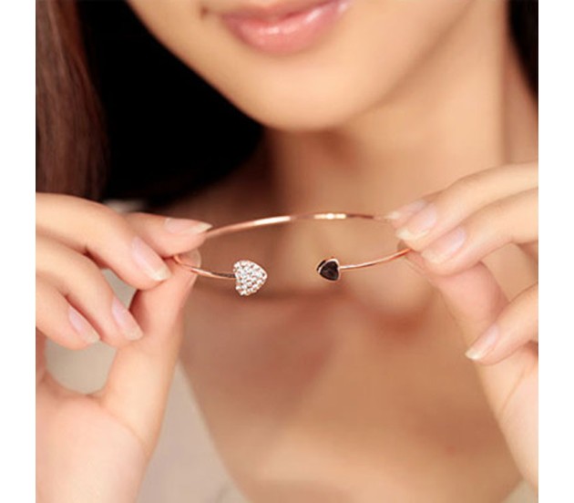 This Heart Shaped Rhinestone stylish bracelet is a must have accessory that will add a little extra sparkle to your look. This beautiful gold plated Heart Cuff bracelet is a must for every woman and girl. The heart shaped gold charm bracelet is perfect for gift giving and makes an amazing gift.