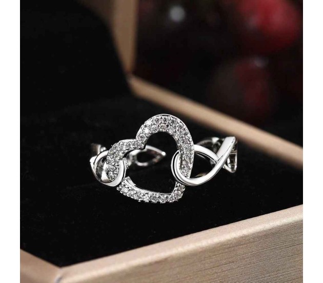 Heart Shape Infinity Love Ring Rhinestone Adjustable Silver Rings Proposal Anniversary Gift for Women and Girls - Valentine Ring for Girl Friend