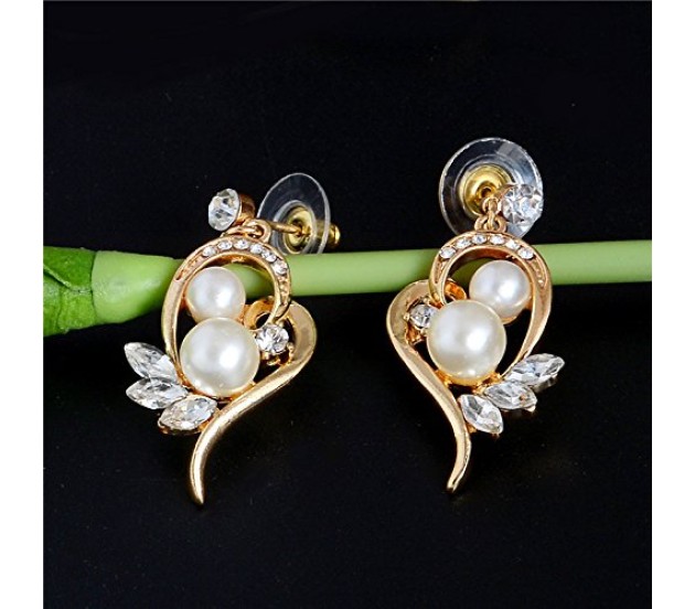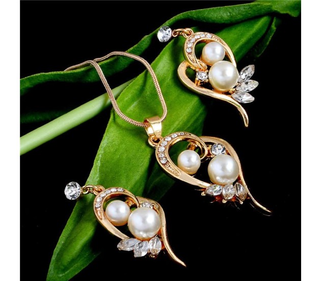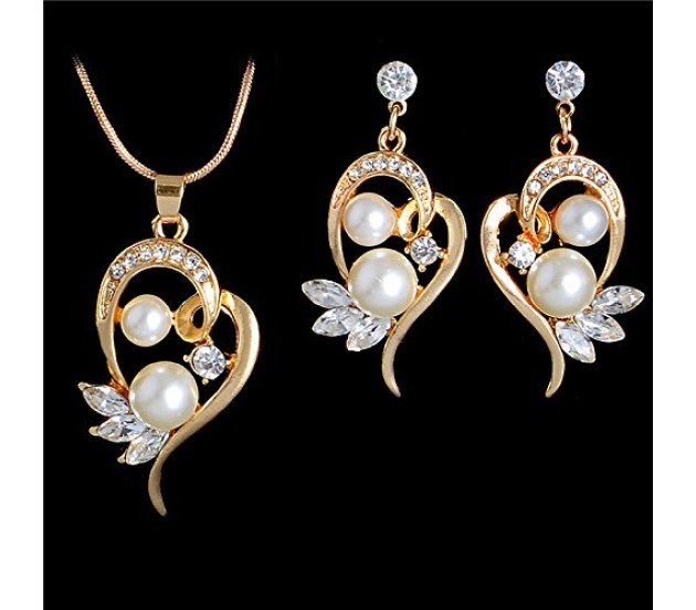 - Get this beautiful heart shape gold plated design with pearls and rhinestone pendant and earrings for your loved one as birthday , anniversary or valentine gift. A jewellery set they will definitely cherish.