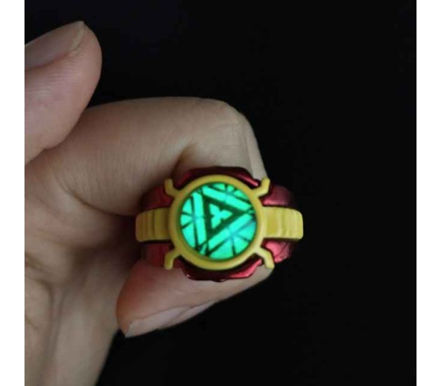 - This Iron Man inspired Glow in the Dark Arc Reactor Ring is a stylish casual everyday fashion for men and boys. The ring glows in dark with natural light, and comes in three sizes to accommodate all. Show your admiration for the superhero with this unique and functional piece of jewelry.