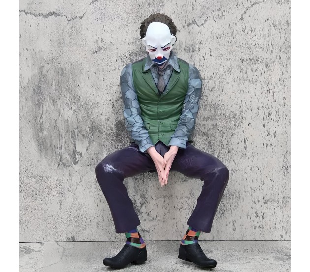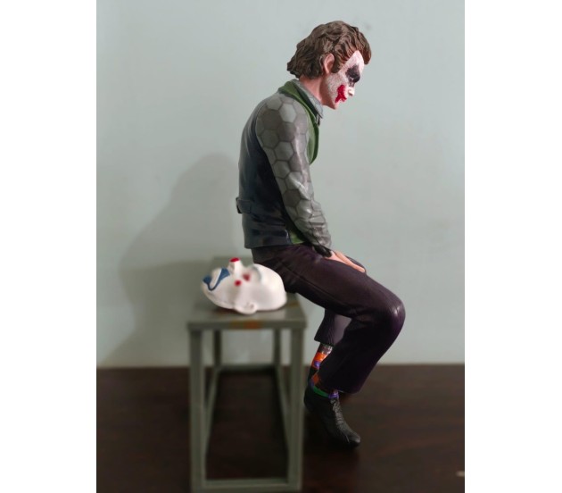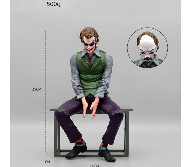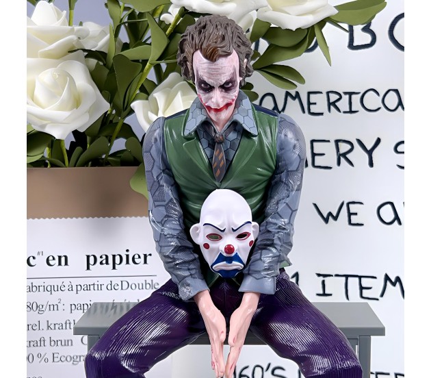 Joker Action Figure Heath Ledger with Mask 25cm Model Toy Statue Dashboard Sitting Pose for Decoration Collector and Car Accessories External Back Side Outside Decoration