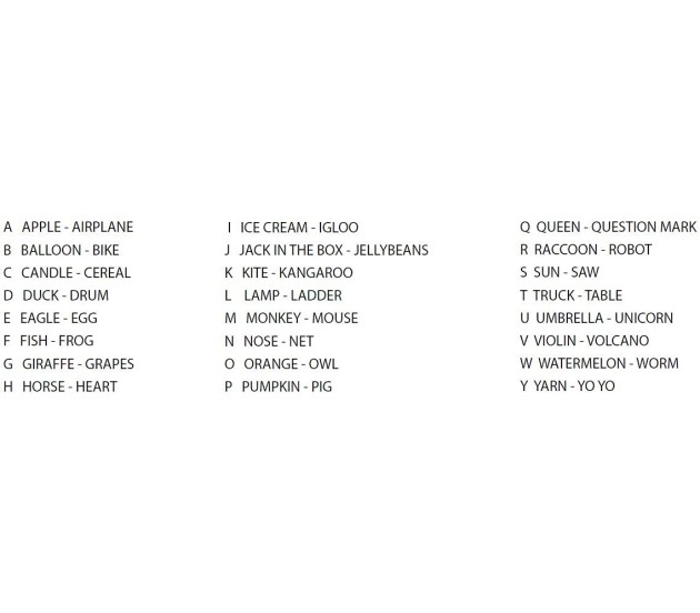 Select a card with the letter of your choice from your hand and place it face up on a discard pile. Sound out the letter on that card and place a chip on a picture whose name begins with that letter. The color on the card must match the colored square by the picture on the board. There are two pictures on the board for each letter, so choose your space wisely!
