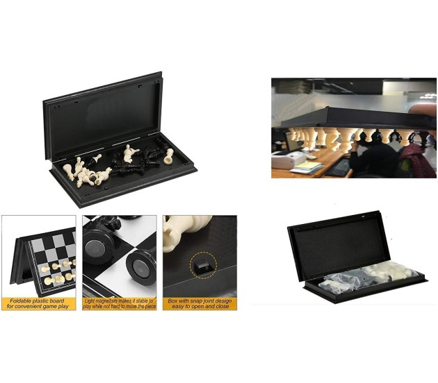 - The magnetic chess set Foldable design - chess pieces can be put into the chessboard for easy storage. Novel style - suitable for home, company, school, journey, bus or picnic. All ages are available.