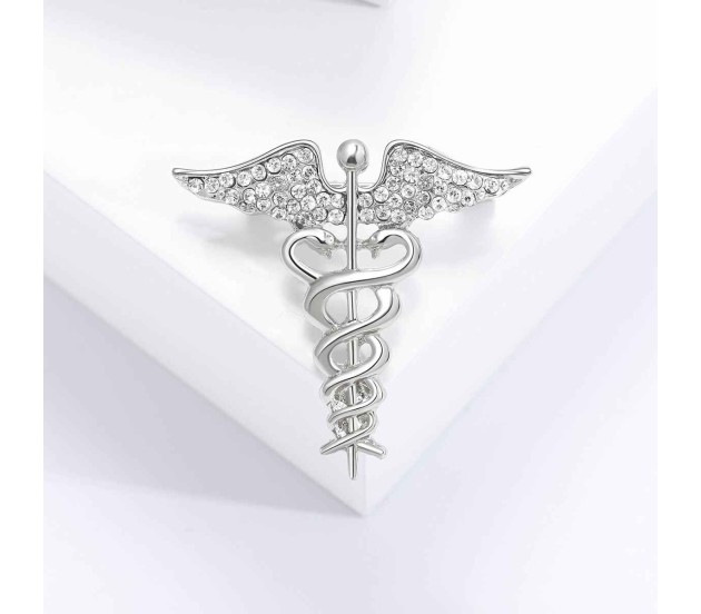 This elegant caduceus brooch is a must-have piece of doctor accessories, designed as a doctor pin to signify the noble medical profession. It is an ideal doctor brooch for both men and women.