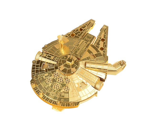 Discover the iconic Millenium Falcon toy as a stunning 3D metal puzzle, perfect for Star Wars fans and collectors alike.