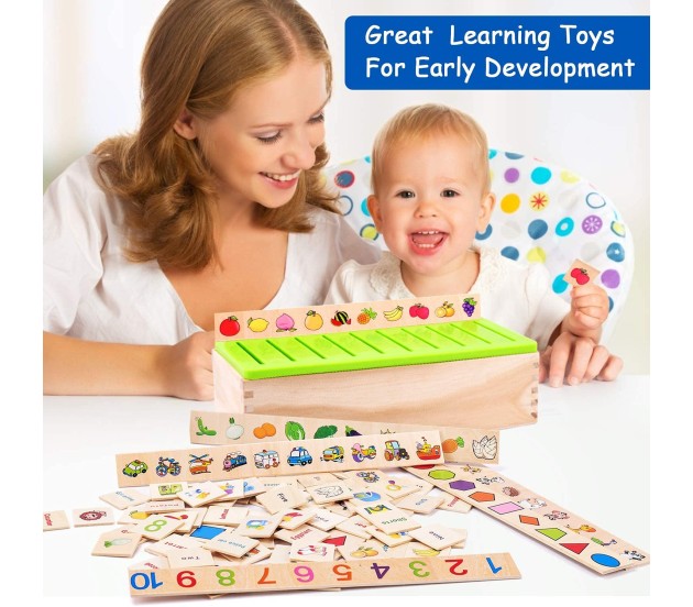 Montessori Educational Knowledge Classification Box Wooden Game Puzzle Sorting and Matching Toys for Toddlers Preschool 2 to 3 Years Multicolor