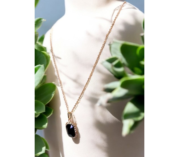 • Versatile Style: The black stone pendant seamlessly blends with any outfit, while the rose gold chain completes the rectangle cystal pendant design ideal for casual or formal wear.