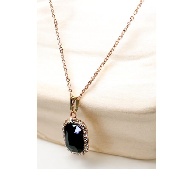 • Tags: Rectangle Stone Black Crystal Necklace Pendant Minimalist Single With Rhinestone and Rose Gold Chain Jewellery For Women