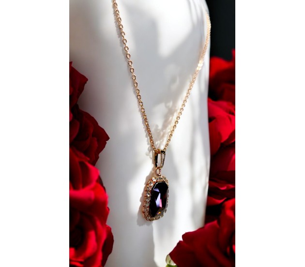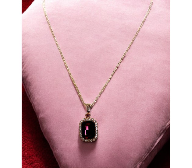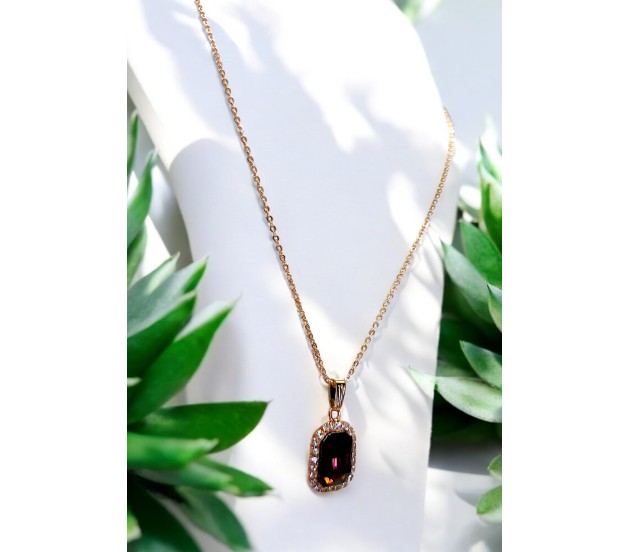 Versatile Style: The maroon stone pendant seamlessly blends with any outfit, while the rose gold chain completes the rectangle cystal pendant design ideal for casual or formal wear.