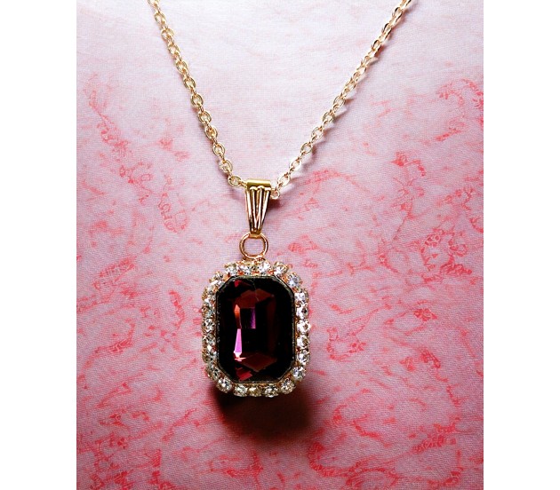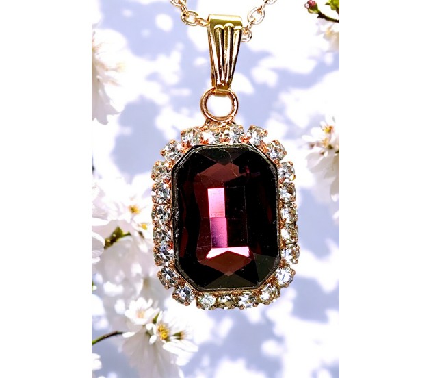 Rectangle Stone Maroon Crystal Necklace Pendant Minimalist Single With Rhinestone and Rose Gold Chain Jewellery For Women