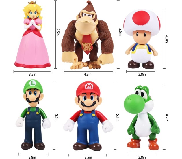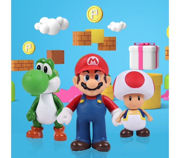 Set of 6 Action figure line now lets you step into the world of Mario Brothers. Action figure stands 14-11 cms tall PVC material production, with exquisite workmanship and bright colors, is the animated model very restored and realistic, environmentally friendly, hurtless to the human body. This pack of 6 Pcs of Mario Brothers Action Figure Set. Merchandise for fans and for gift purposes BEST FOR GIFTING toy on Birthday and Christmas | Can use as Cake Toppers/Cake Decoration as well |It can be used for car furnishing articles, children's toys, desktop decor, cake decor, birthday gift. Perfect collectible for someone who loves the characters for their bravery, honesty, politeness, determination, will power and finding their true love and purpose.