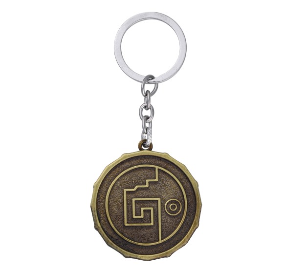 This pirates keychain is a must-have for any fan. It features the iconic aztec coin, making it a unique aztec coin keychain and a great piece of pirate accessories.