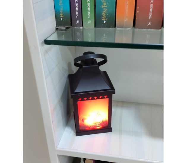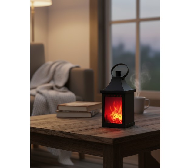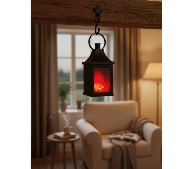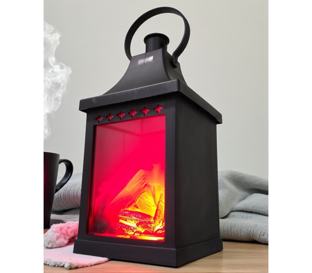 Portable 25CM Artificial Fireplace LED Lamp with Realistic Flame Effect Hanging Lantern For Living Room, Bedroom, Indoor Decoration Electric Faux Fire Place Black
